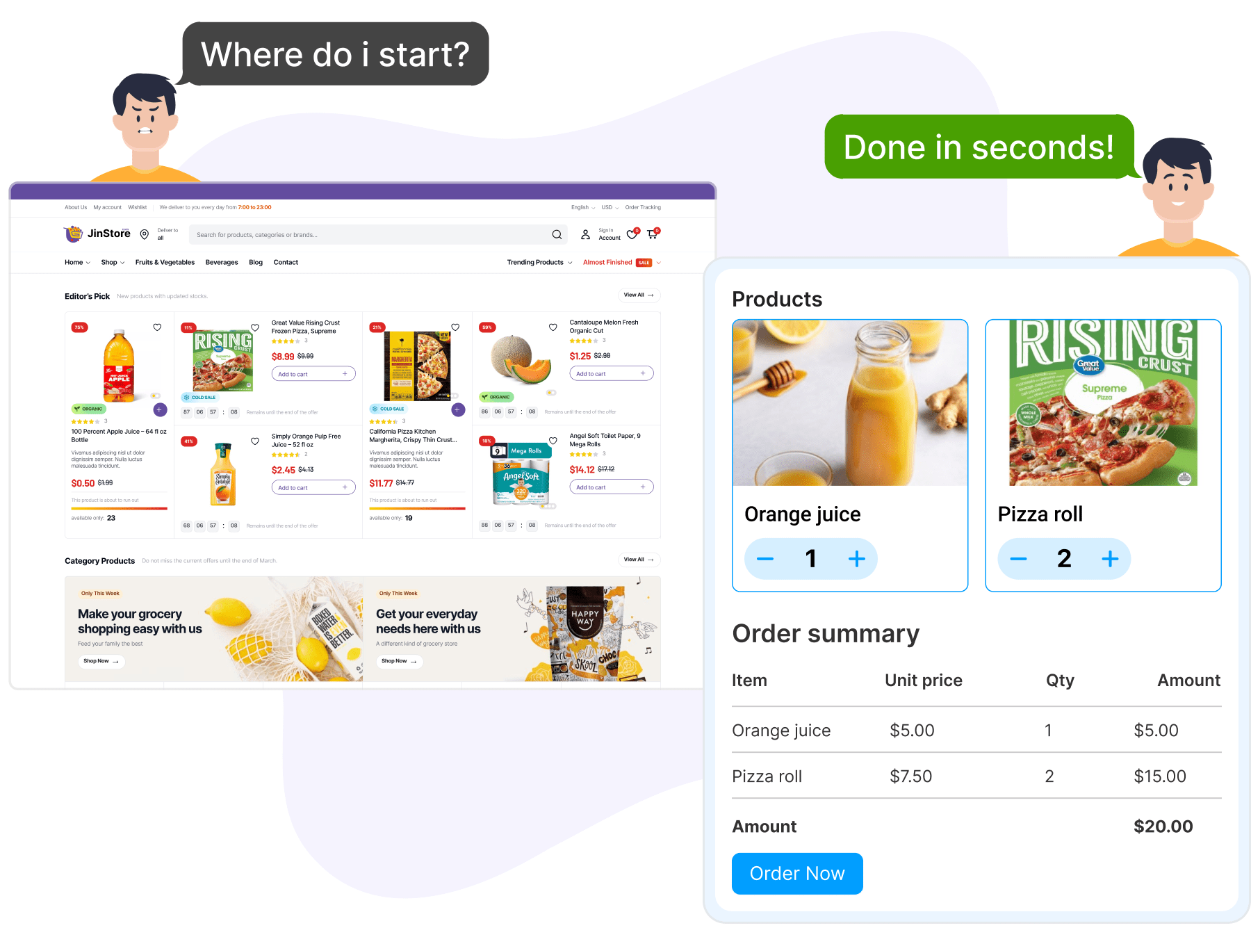 eCommerce websites are hard to navigate—your users have to jump through multiple pages to place an order. With Neartail, you can share one link, and your users can place their entire order on a single page, reducing abandoned orders.