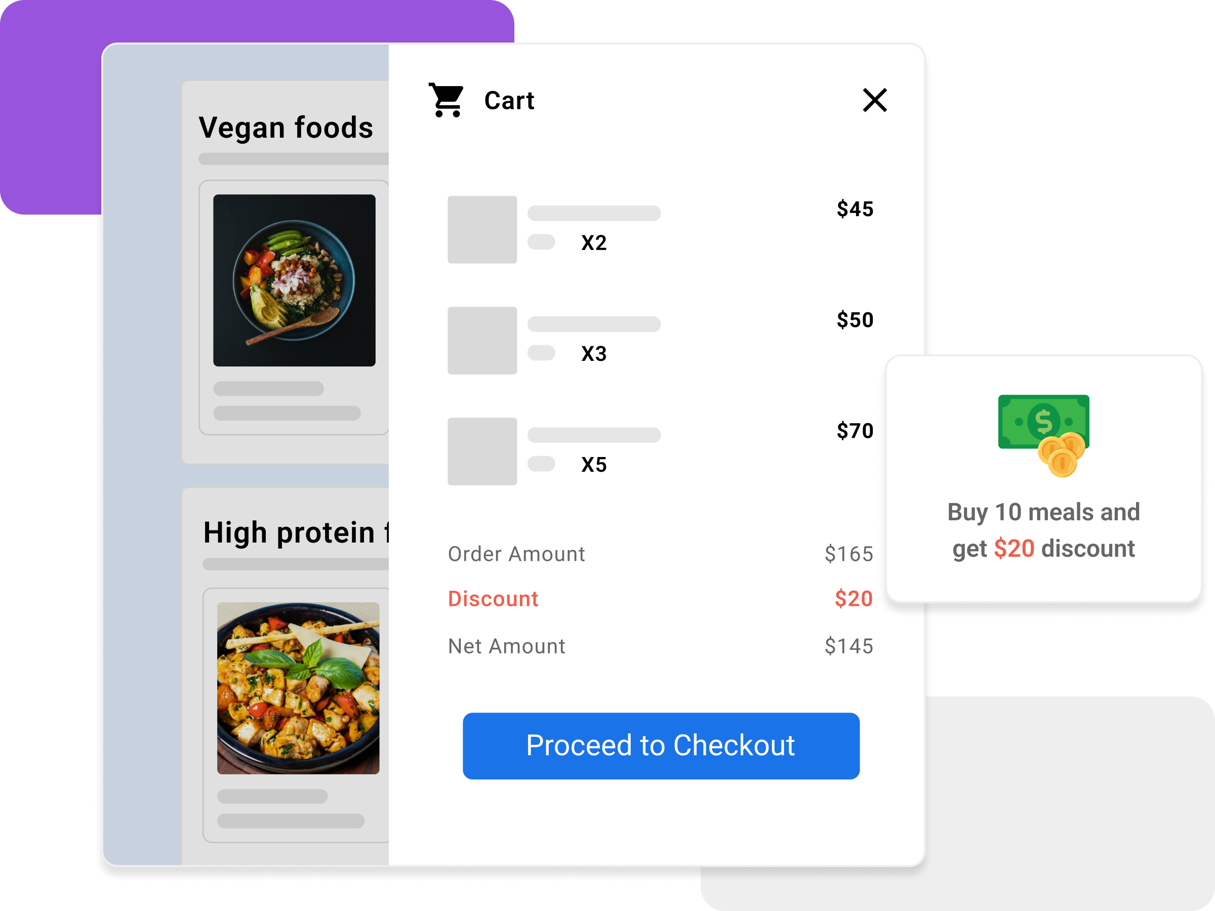 Incentivize users to increase their purchases through discounts based on the number of meals ordered or the total order amount