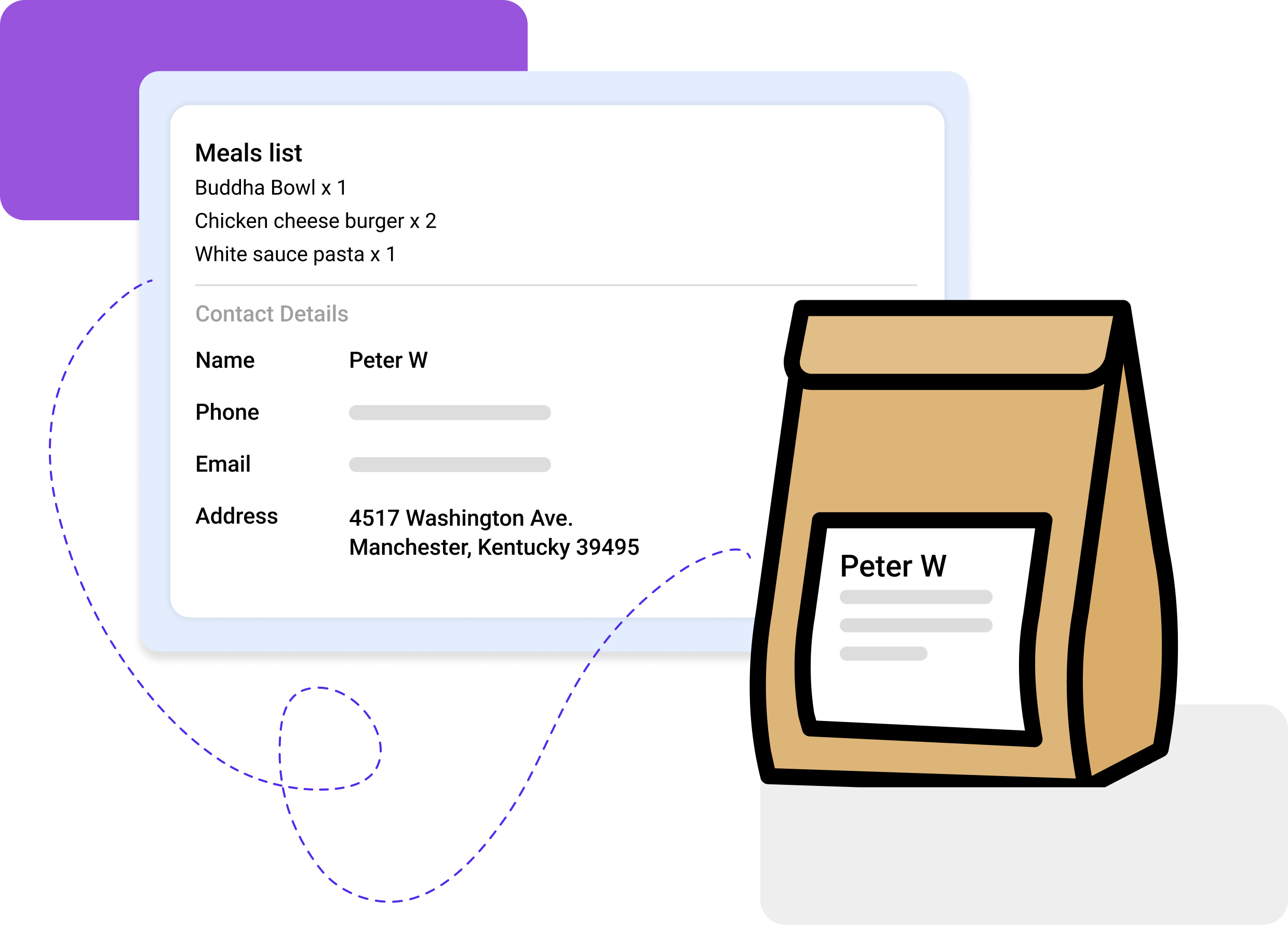 Use packing lists with names, meals, address to simplify bagging of customer orders and attach it to individual bags for easy delivery